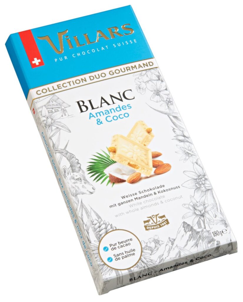 Chocolat Blanc Amandes et Coco Villars en pack de 2 Plaque de 180 gr