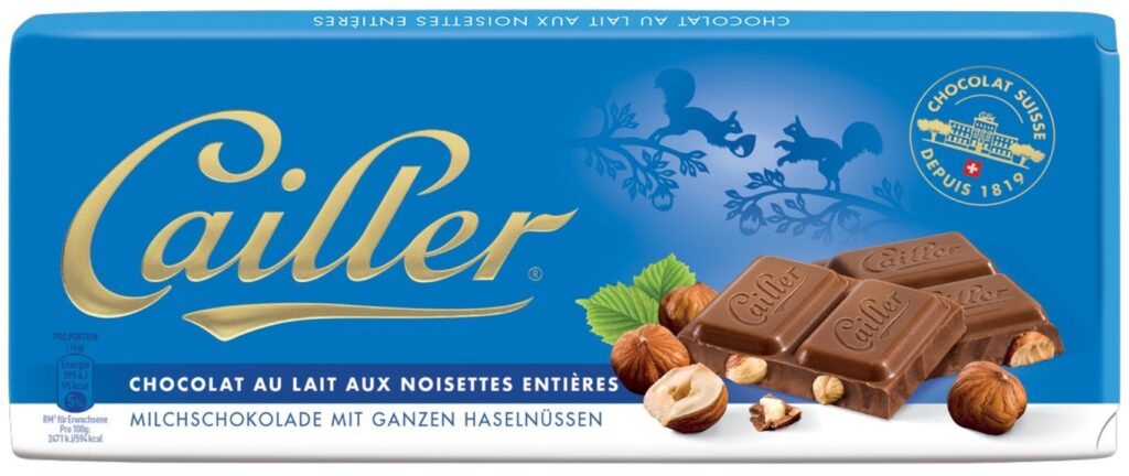 LAIT condensé sucré (45%) (LAIT, LAIT écrémé, sucre), NOISETTES (24%), sucre, beurre de cacao, cacao (4.5%), BEURRE fondu (FR: BEURRE pâtissier), pâte de cacao (0.5%), émulsifiant(lécithines), extrait de vanille. KANN ENTHALTEN: OEUFS, GLUTEN, AMANDES, autres FRUITS A COQUE.