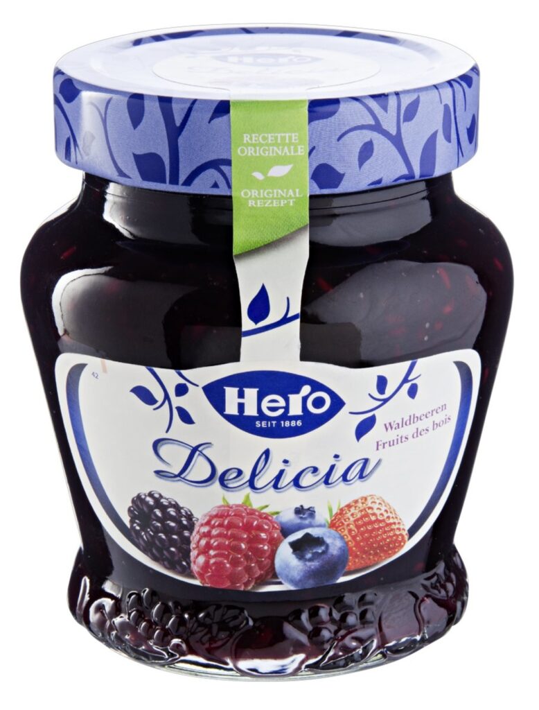 Selon une recette suisse d’origine avec une teneur en fruits de 60%, Hero Delicia, l’originale. 320g en verre. Malgré tout le soin apporté à la confection du produit, la présence de débris de noyaux ne peut être totalement exclue.