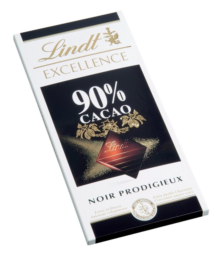 Chocolat Noir Excellence 90% Cacao Lindt en pack de 5 Plaque de 100 gr