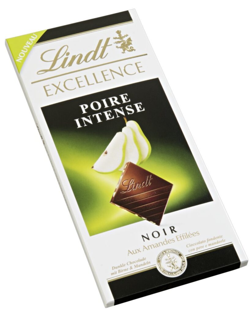 Chocolat Noir Excellence à la Poire et aux Amandes Effilées Lindt en pack de 5 Plaque de 100 gr