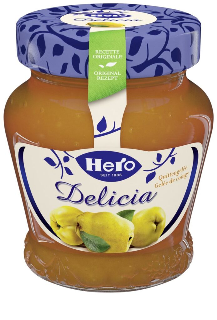 Selon une recette suisse d’origine avec une teneur en fruits de 60%, Hero Delicia, l’originale. 320g en verre. Malgré tout le soin apporté à la confection du produit, la présence de débris de noyaux ne peut être totalement exclue.