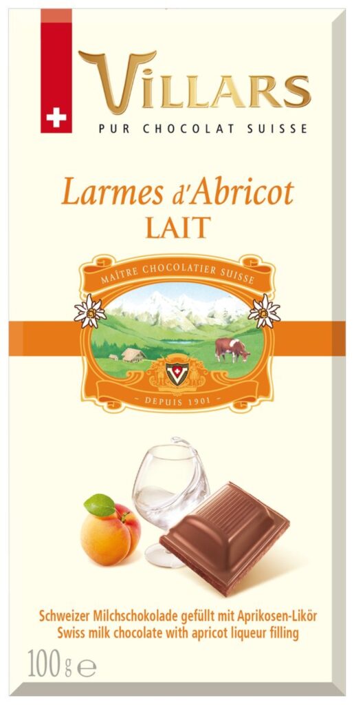 Chocolat au Lait Larmes d’Abricotine Lait Villars en pack de 3 Plaque de 100 gr