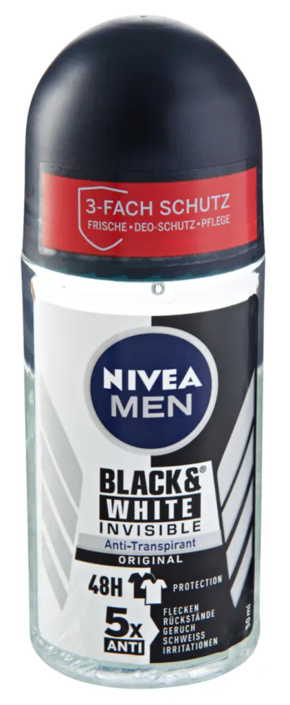 La protection NIVEA contre les taches de déodorant – Le Roll-on Black & White Invisible Original NIVEA MEN, c’est le déodorant qui laisse moins de résidus blancs sur les textiles foncés tout en réduisant l’apparition de taches jaunes sur les textiles clairs. Sa formule anti-transpirante haute performance empêche efficacement les odeurs corporelles indésirables et l’humidité sous les aisselles, pendant 48 heures. Parfum masculin discret et fraîcheur revitalisante. Le soin doux et longue durée de NIVEA et la sensation d’une peau sèche.