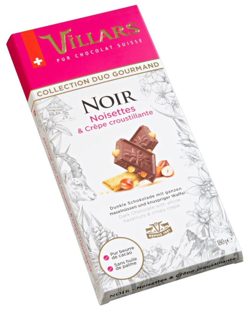Chocolat Noir Noisettes et Crêpe Croustillante Villars en pack de 2 Plaque de 180 g