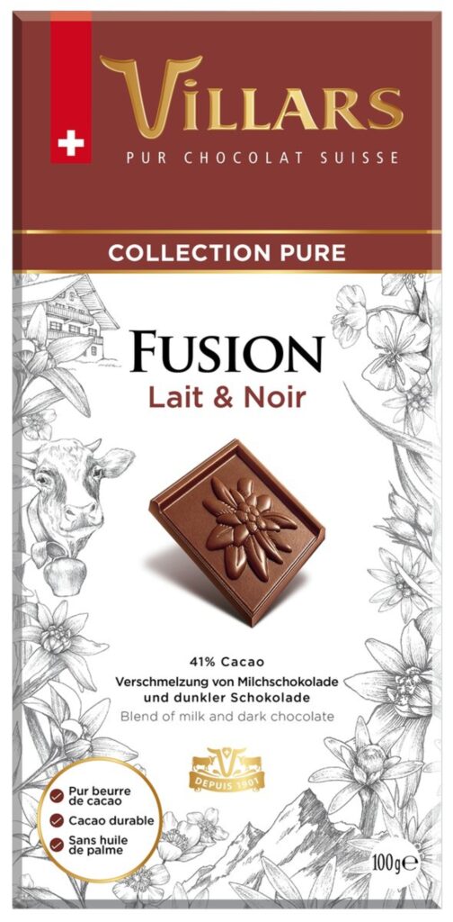 Chocolat Pur Fusion Lait et Noir Villars en pack de 3 Plaque de 100 gr