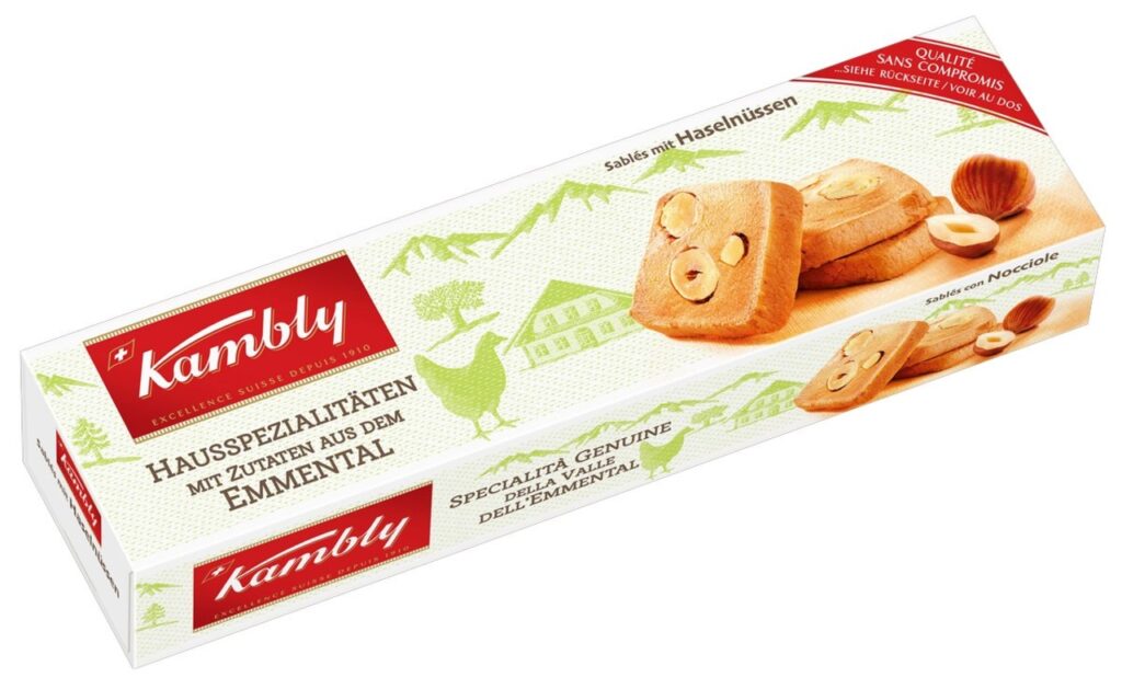 Sablés authentiques au beurre de la vallée de l’Emmental et aux noisettes entières, légèrement grillées