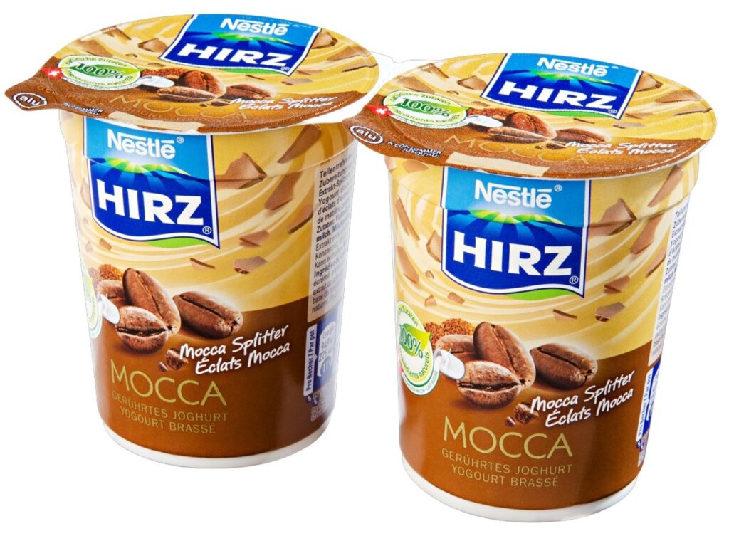 Yogourt doux avec 2.5 % préparation d’éclats d’extrait de café décaféiné, (3.4 % de matière grasse dans la partie lactique)